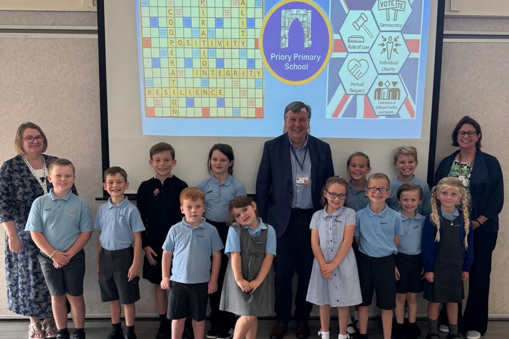 Visit to Priory Primary School in Bicknacre to speak with pupils about democracy, answer questions about parliamentary work and present badges to the newly elected School Council.