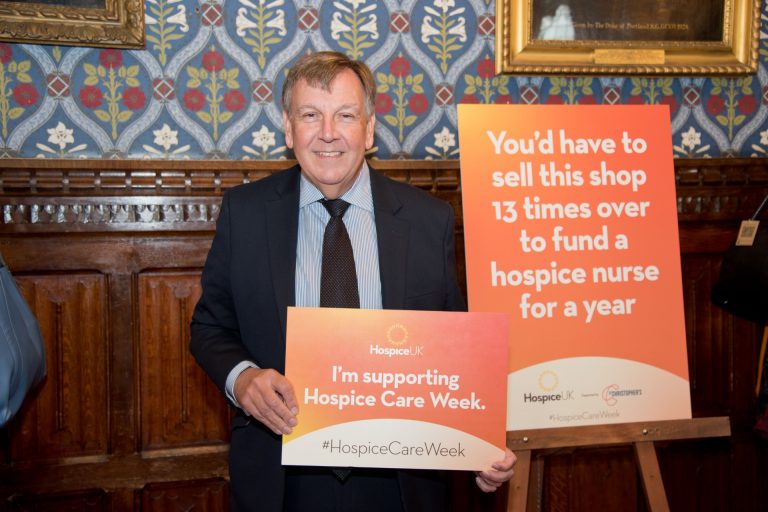 Sir John Whittingdale, MP for Maldon, attends Hospice UK’s pop-up hospice Charity Shop event in Parliament.